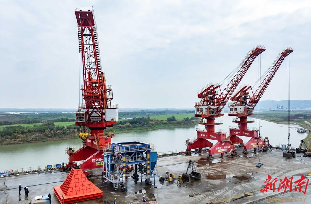 走进津市港二期工程,高效、智能、绿色的自动化散货码头正在加紧建设,码头设计4个千吨级散货泊位。