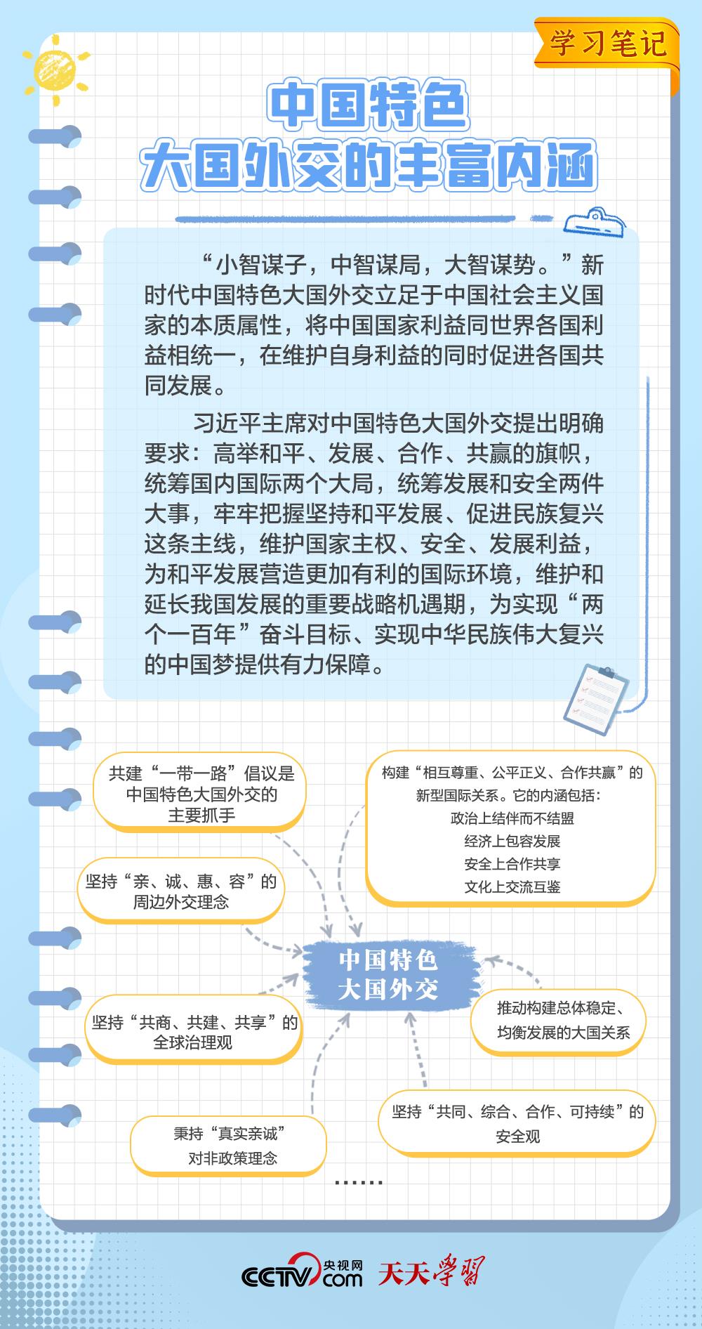 天天学习2014年11月,习近平总书记在中央外事工作会议上指出,中国必须有自己特色的大国外交。