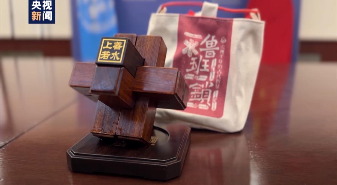 六根棕色木条相互巧妙锁定,构成一个稳定的整体。这是中国担任2023年11月联合国安理会轮值主席首日向安理会成员赠送的礼品——鲁班锁。