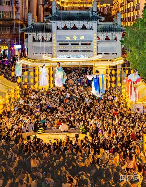 改造后的郁孤台历史文化街区流光溢彩,吸引游客沉浸式体验宋朝文化(央广网发 胡中 摄)