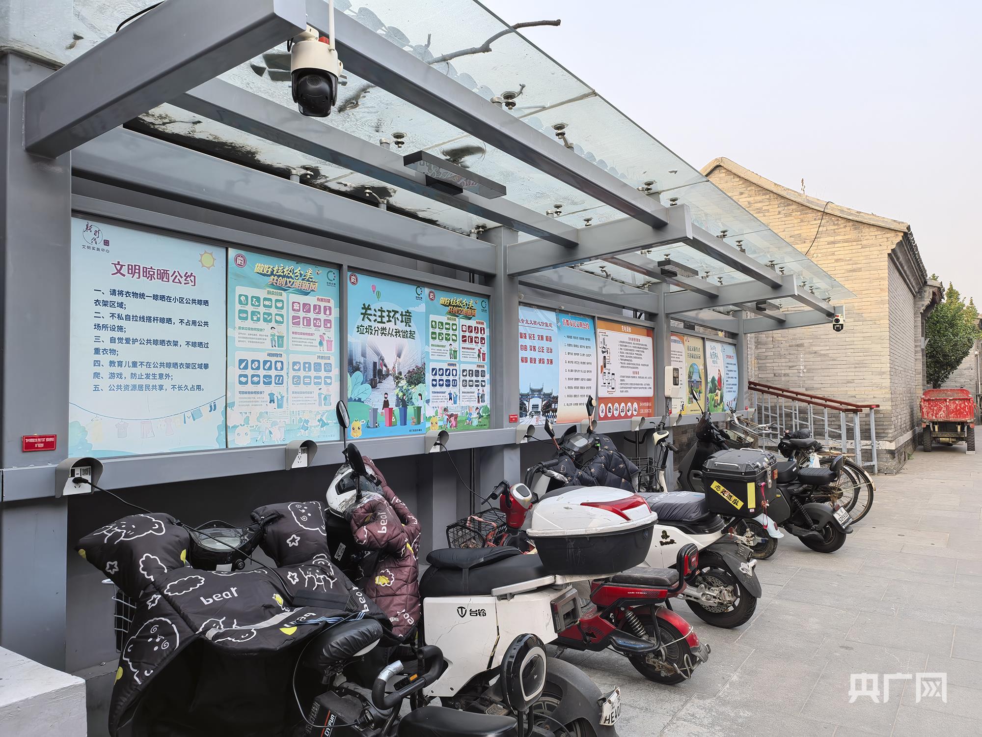 “小院议事厅”协商建立的首个停车棚(央广网记者 阮修星 摄)