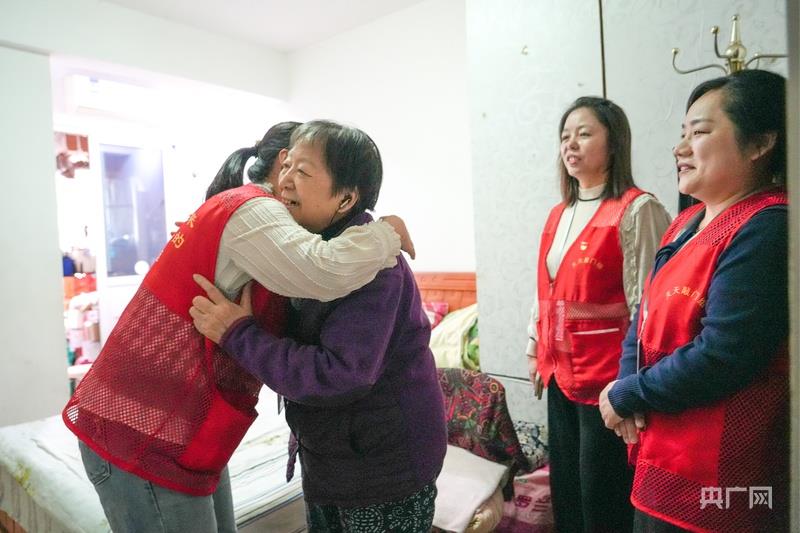 张丽娟热情地拥抱社区工作人员(央广网见习记者邓子依 摄)