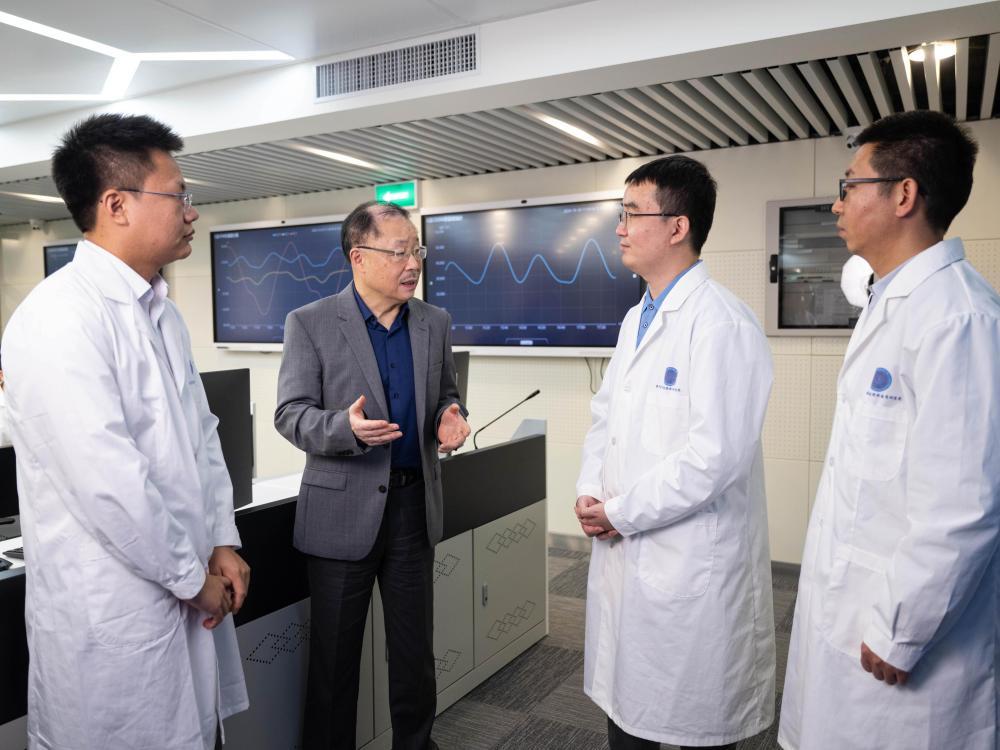 19日上午,习近平主席来到澳门科技大学,走进澳科卫星科学与应用数据中心,通过电子屏幕观看“澳门科学一号”卫星实时运行情况,了解项目的科研进展和应用前景,同在场的研究人员和学生代表亲切交流。