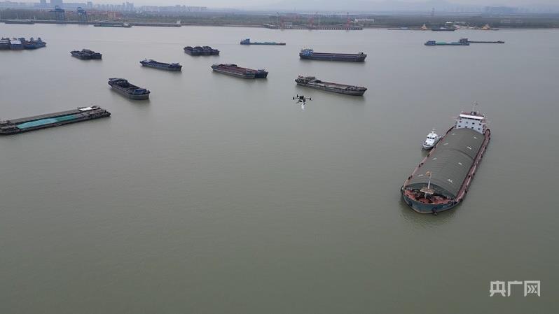 无人机在给长江船只送货(央广网发 刘剑忠 摄)