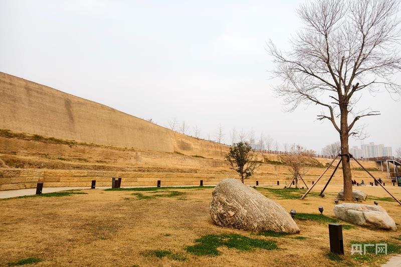 修缮后的郑州商城遗址南城墙(央广网记者 郝振青 摄)