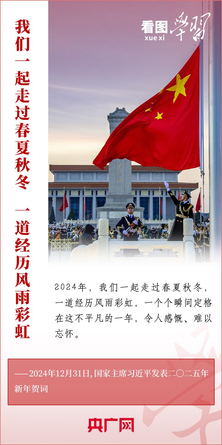 “梦虽遥,追则能达;愿虽艰,持则可圆。”新年前夕,习近平主席发表二〇二五年新年贺词。在温暖有力的讲述中,习主席深情回望过去一年中国不平凡的奋斗历程、精彩瞬间,感慨大家一道经历的风雨彩虹、难忘时刻,赞美无数为梦想拼搏的劳动者、建设者、创业者。习主席说,中国式现代化的新征程上,每一个人都是主角,每一份付出都弥足珍贵,每一束光芒都熠熠生辉。让我们充满信心,在新的一年接续奋斗!