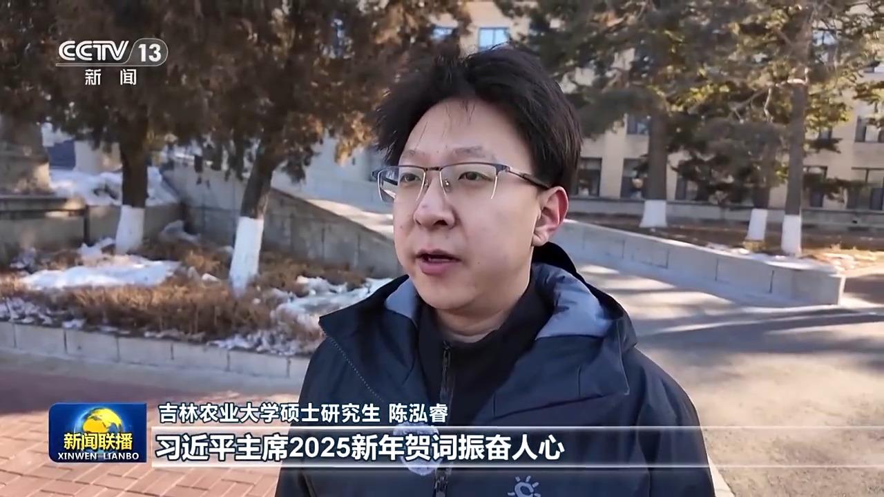 吉林农业大学硕士研究生 陈泓睿:中国碗装了更多中国粮,习近平主席2025新年贺词振奋人心,我将以更加饱满的热情,更加坚定的信念,练就出强农兴农过硬本领,展现新时代农业学子的青春作为、彰显青春风采、贡献青春力量。