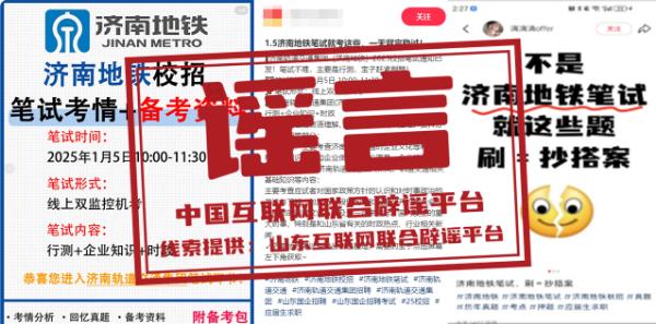 谣言:成都地铁招聘“提前预定名额”?济南地铁校园招聘有“真题”?