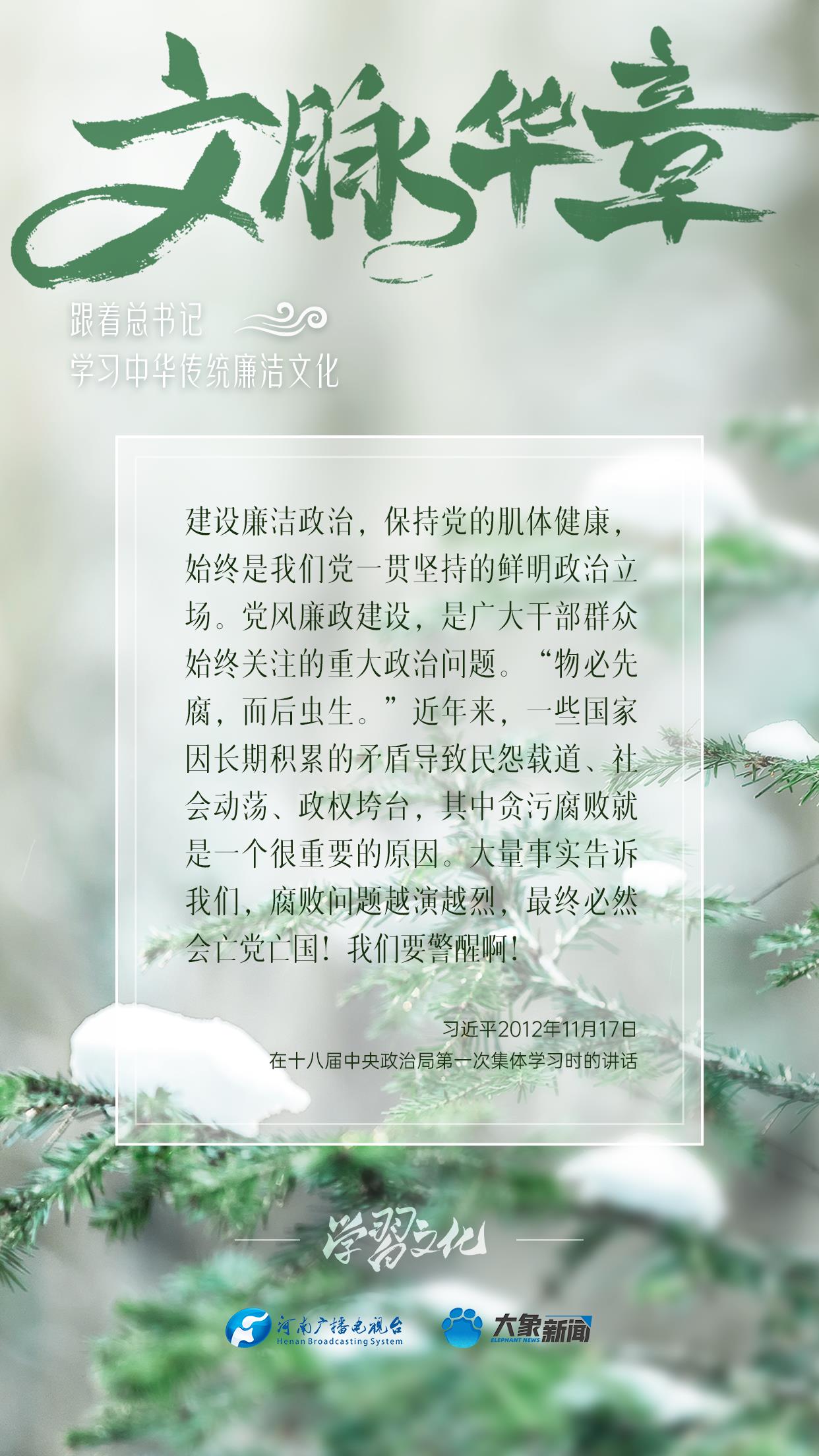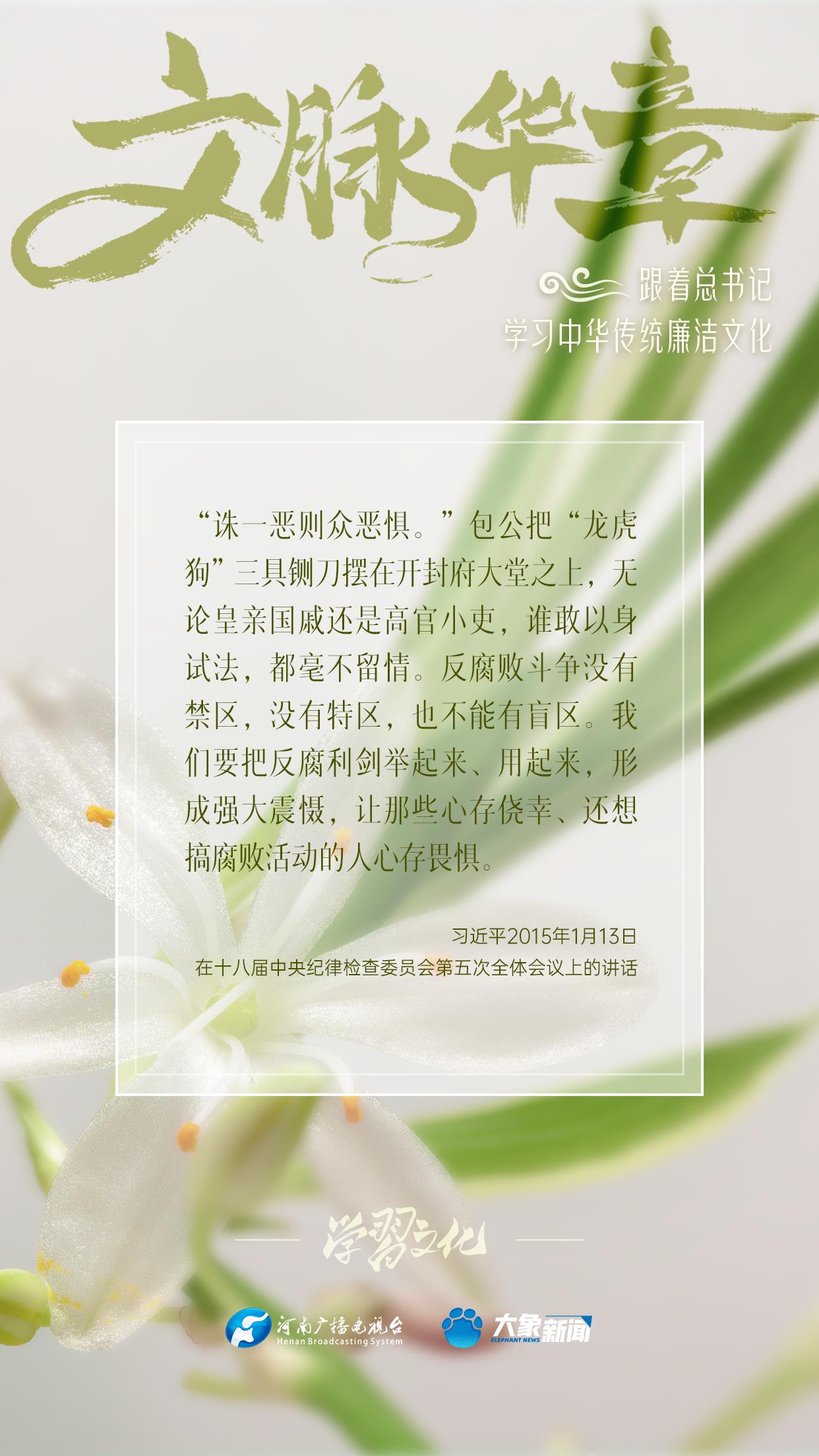 中华优秀传统文化蕴含着丰富的廉洁文化,习近平总书记曾指出:没有中华优秀传统文化、革命文化、社会主义先进文化的底蕴和滋养,信仰信念就难以深沉而执着。总书记常常引经据典,教育引导广大党员干部正心修身,涵养文化,守住为政之本。大象新闻分五期为您梳理,我们一起跟着总书记学习中华传统廉洁文化。今天推出第五期。