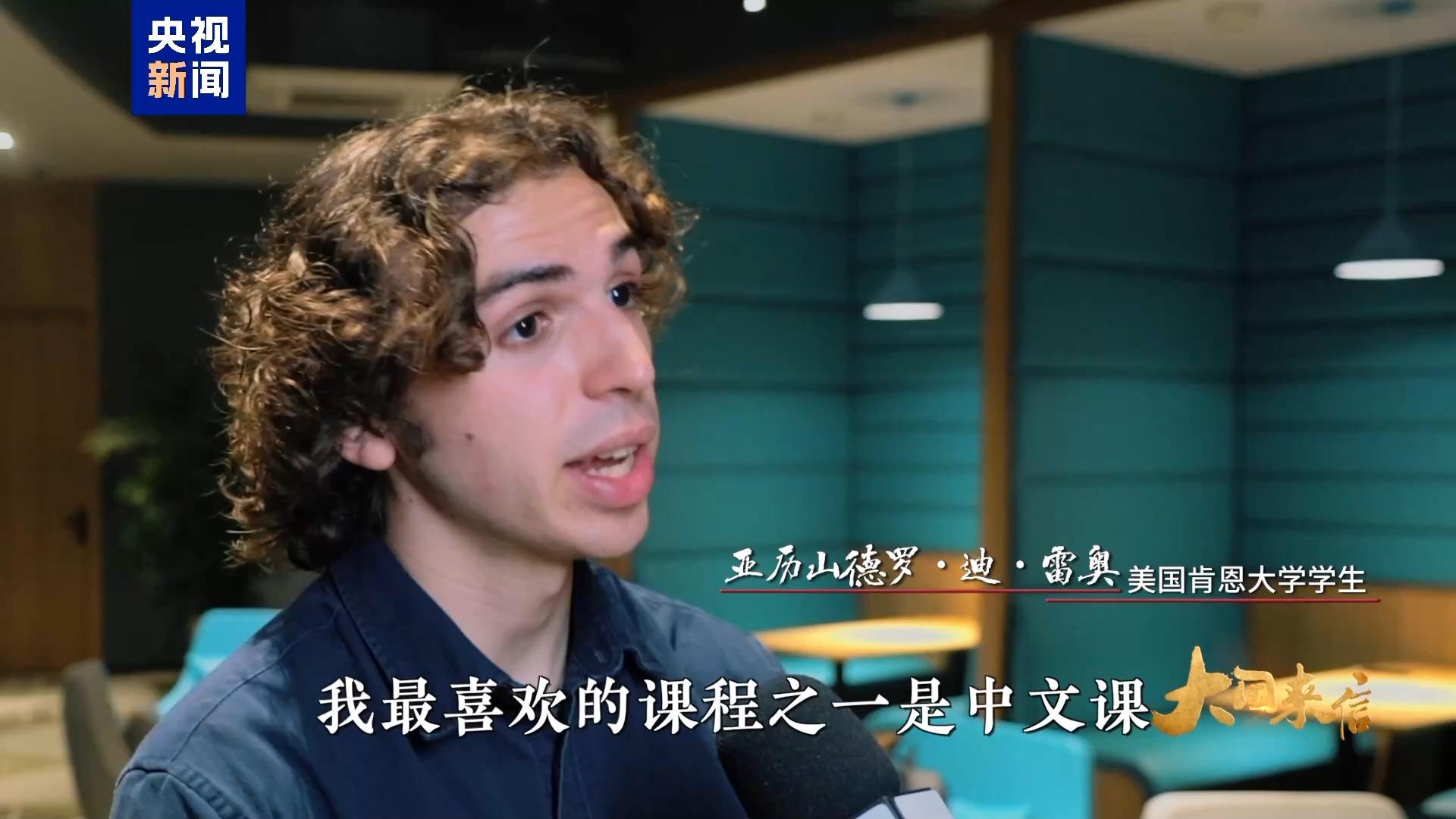 美国肯恩大学学生 亚历山德罗·迪·雷奥:我叫亚历山德罗·迪·雷奥。我是美国肯恩大学的一名本科生。我在中国学习期间,我经历了人生中最精彩的一次探索与体验。我最喜欢的课程之一是中文课,我们的老师会给我们讲中国的节日、习俗、历史以及名胜古迹。