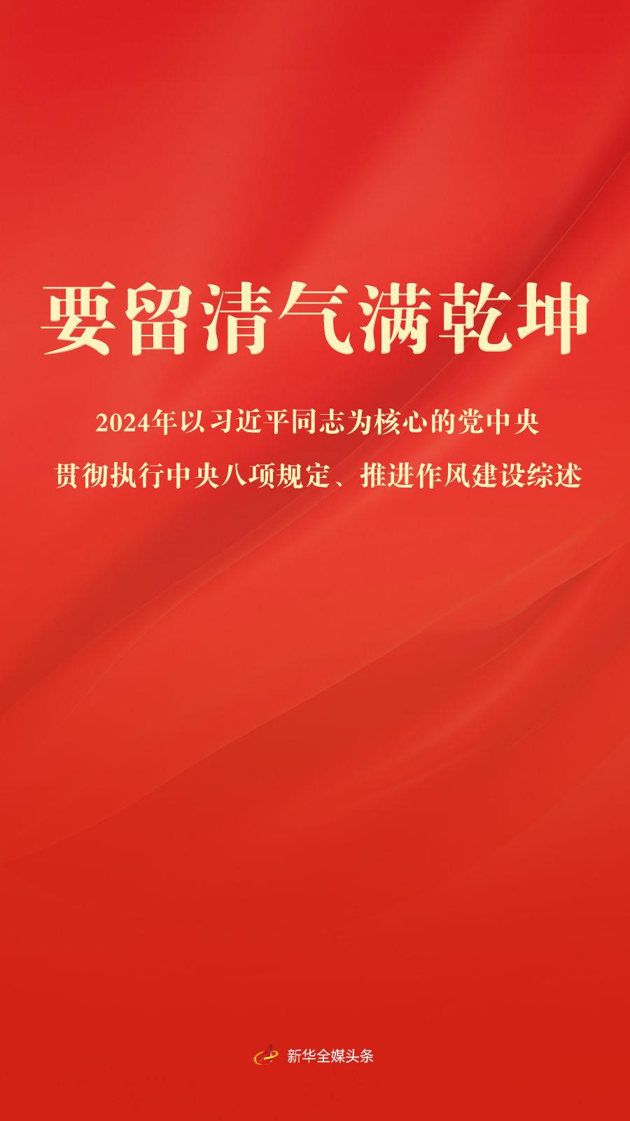 要留清气满乾坤——2024年以习近平同志为核心的党中央贯彻执行中央八项规定、推进作风建设综述