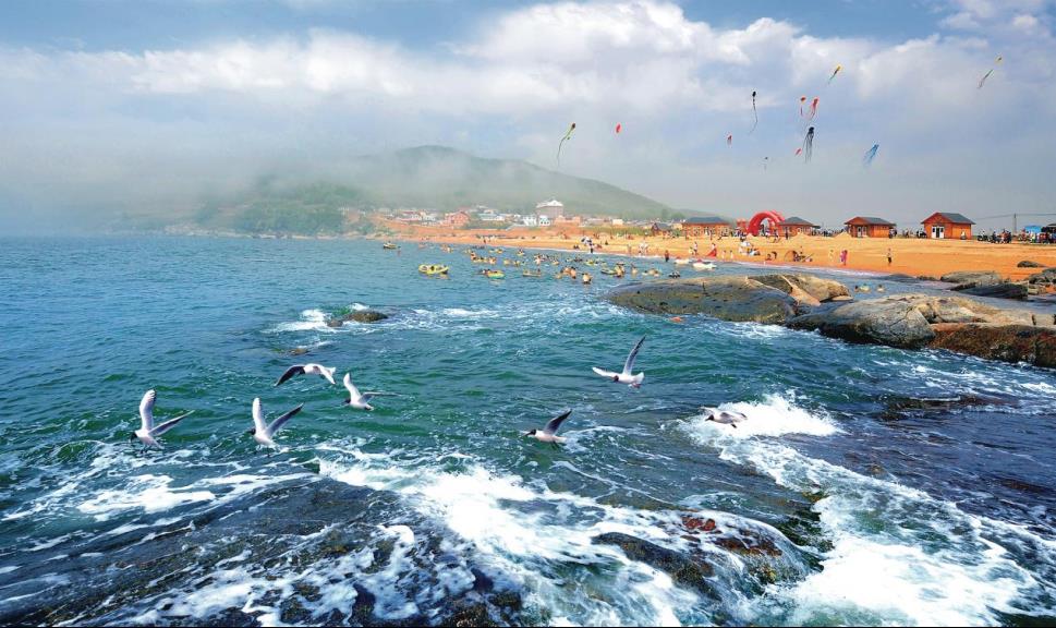 数九隆冬,位于葫芦岛兴城市的三礁揽胜景区附近海水结冰。