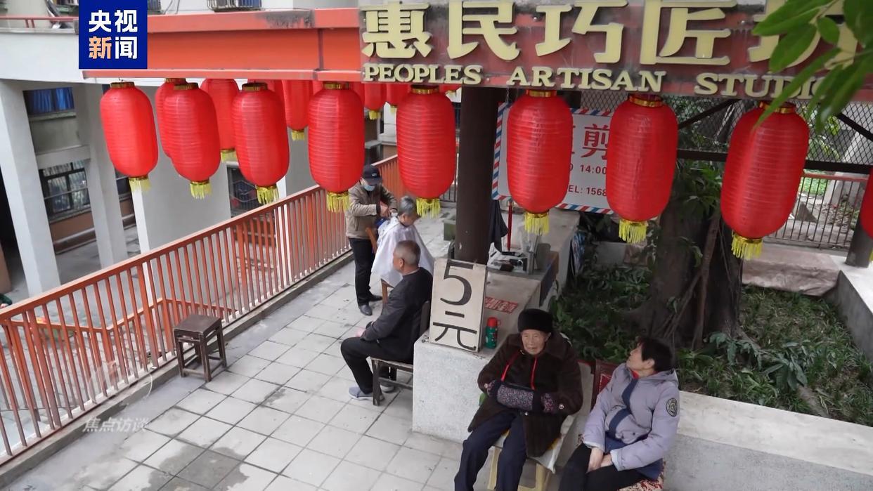 2022年初,民主村社区开始启动更新改造,特意将修鞋、换锁、剪发等老手艺、老营生保留下来,把这些“游摊”搬进了5个固定场所“惠民巧匠坊”,免摊位费、免水电费,不仅提高了“巧匠们”的收入,更承载起一份往日岁月的情感联系。