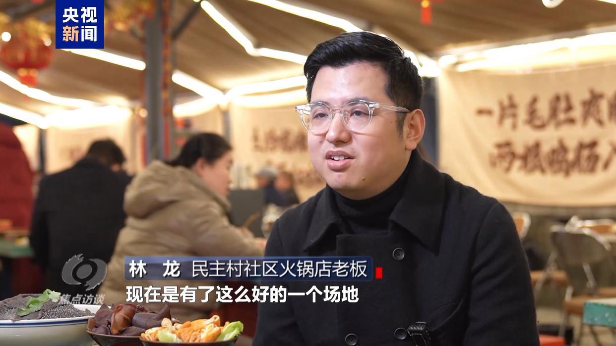 民主村社区火锅店老板 林龙:搬过来之前我们是15张桌子左右,现在有了这么好的一个场地,现在已经扩大到33张台。重新开店以后,招工这一块人社部门也是给予了我们很大支持。