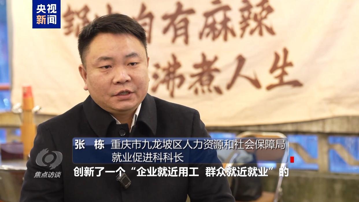 重庆市九龙坡区人力资源和社会保障局就业促进科科长 张栋:就业是最基本的民生,我们贯彻总书记的殷殷嘱托,创新了一个“企业就近用工,群众就近就业”的“双就近”服务改革。这些火锅店的员工相对来说年纪比较大。我们通过数字就业系统就自动匹配上了,老板很快找到这些员工,而这些孃孃也很快找到工作。其实我们工作的目的说白了,就是让群众有活干,有钱赚。