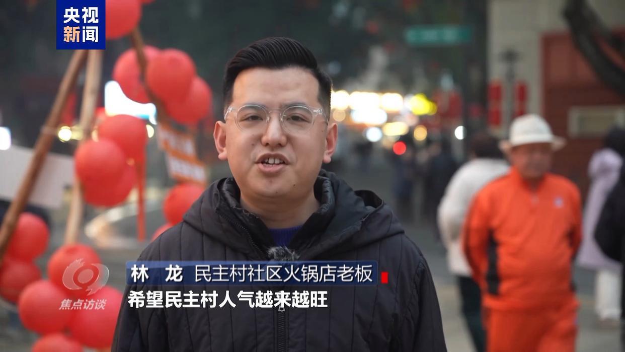民主村社区火锅店老板 林龙:希望民主村人气越来越旺,我们火锅店生意越来越好,大家都多赚票子!