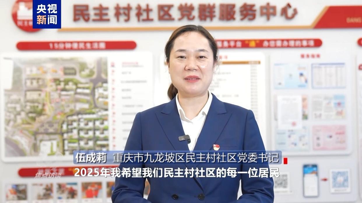 重庆市九龙坡区民主村社区党委书记 伍成莉:2025年我希望我们民主村社区的每一位居民心往一处想,劲儿往一处使,把我们的社区建设得更加美好。