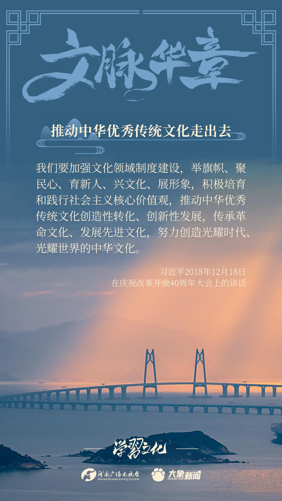 党的十八大以来,习近平总书记高度重视中华优秀传统文化的传承发展,突出强调推动中华优秀传统文化走出去,作出了一系列重要论述,大象新闻邀您一起学习。