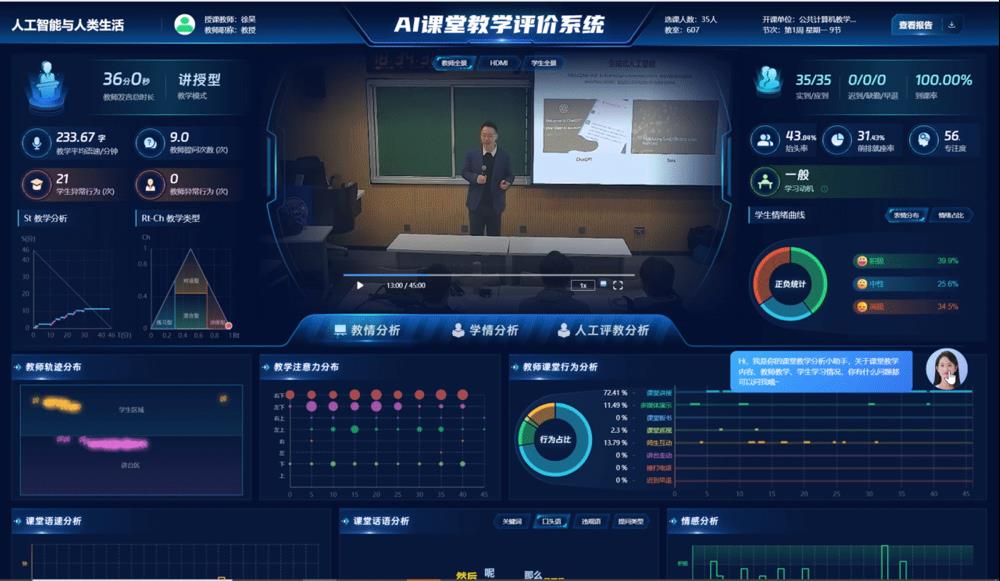“您讲授的‘人工智能与人类生活’课程质量很高,但您的口头语比较频繁……”报告共有教学内容、教学方法、师生行为等28项指标,还会针对提升教学质量给出合理建议。