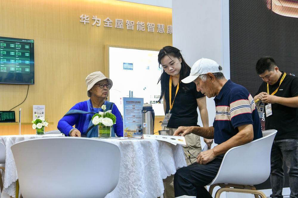 2024年10月27日,两名老人在2024深圳国际智慧养老产业博览会上了解智慧康养产品。近年来,一大批民营企业聚焦民生重点,以前沿技术和市场化手段提供破题方案,体现出民营经济促创新、惠民生的时代担当。