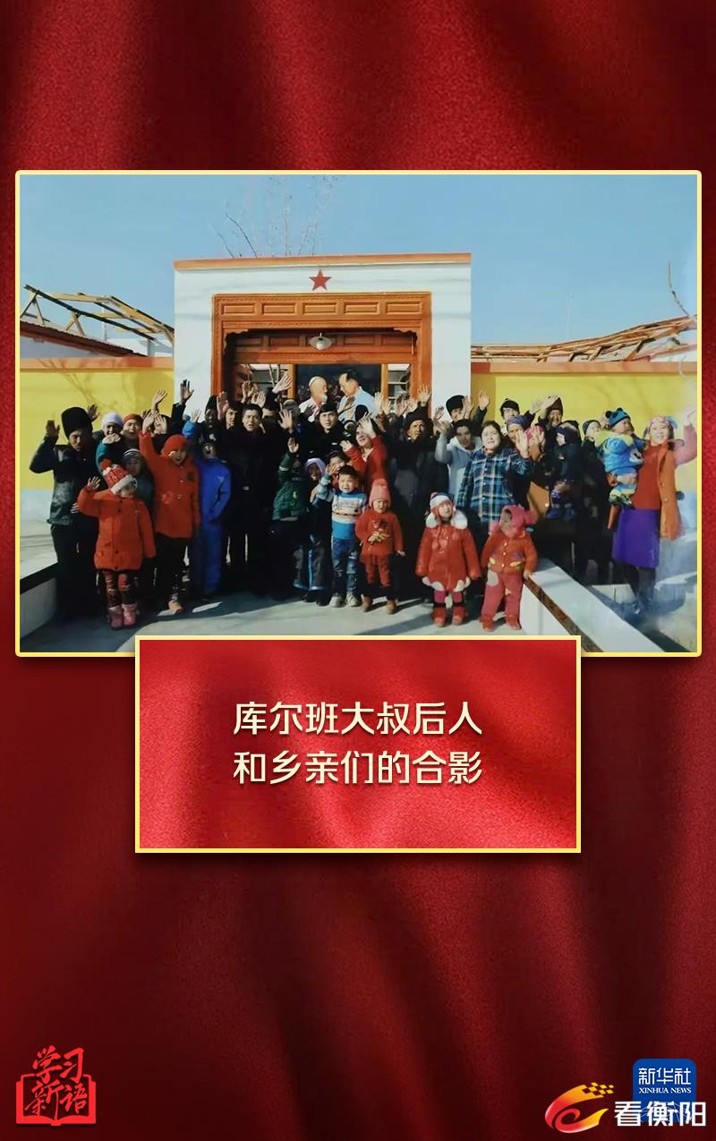 照片中,库尔班大叔的后人和乡亲们幸福地簇拥在一起。此前,总书记曾给库尔班大叔的后人回信,为他们送去美好的祝福。