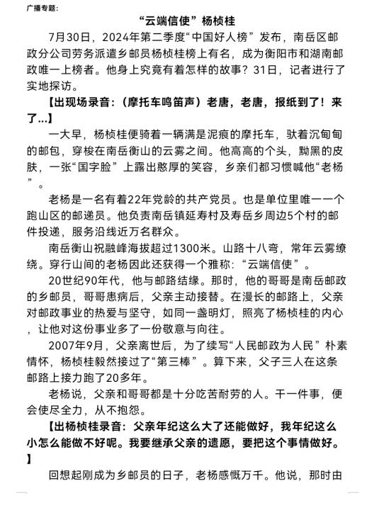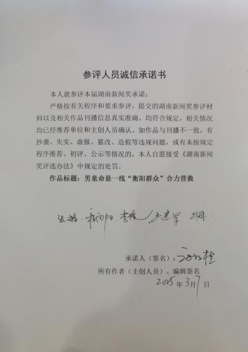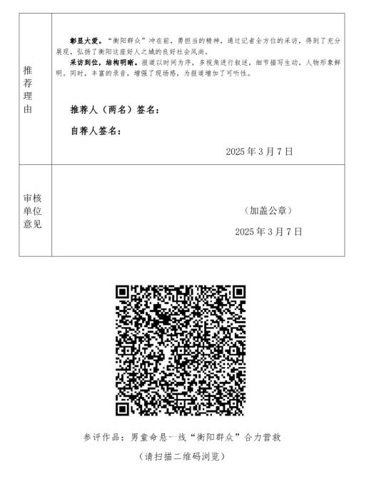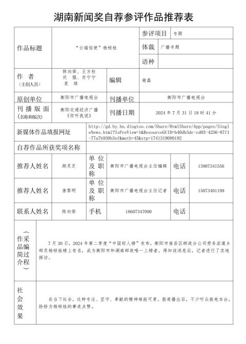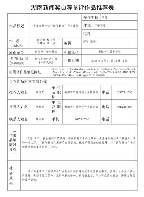 衡阳市广播电视台自荐作品参评2024年度湖南新闻奖公示