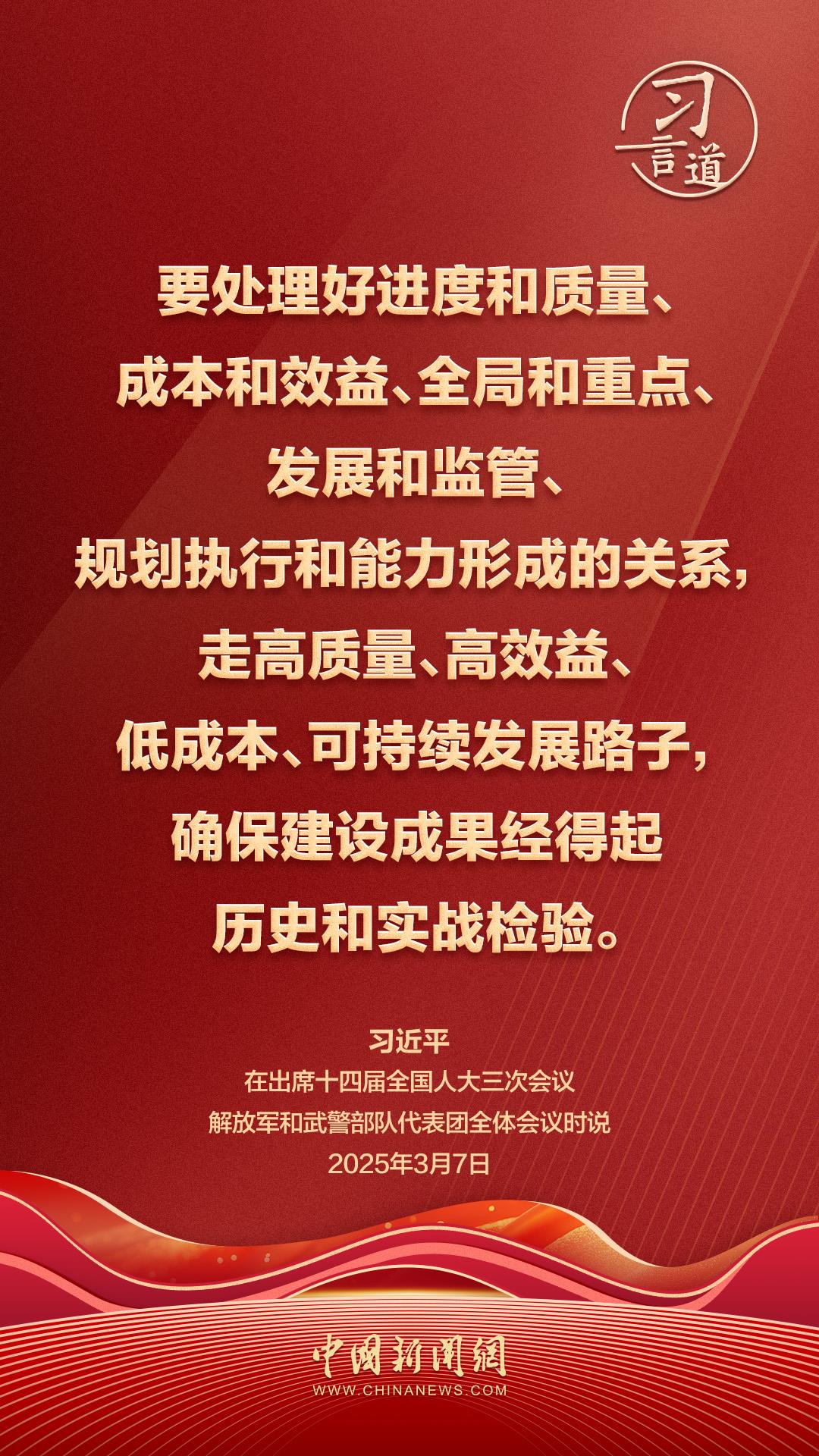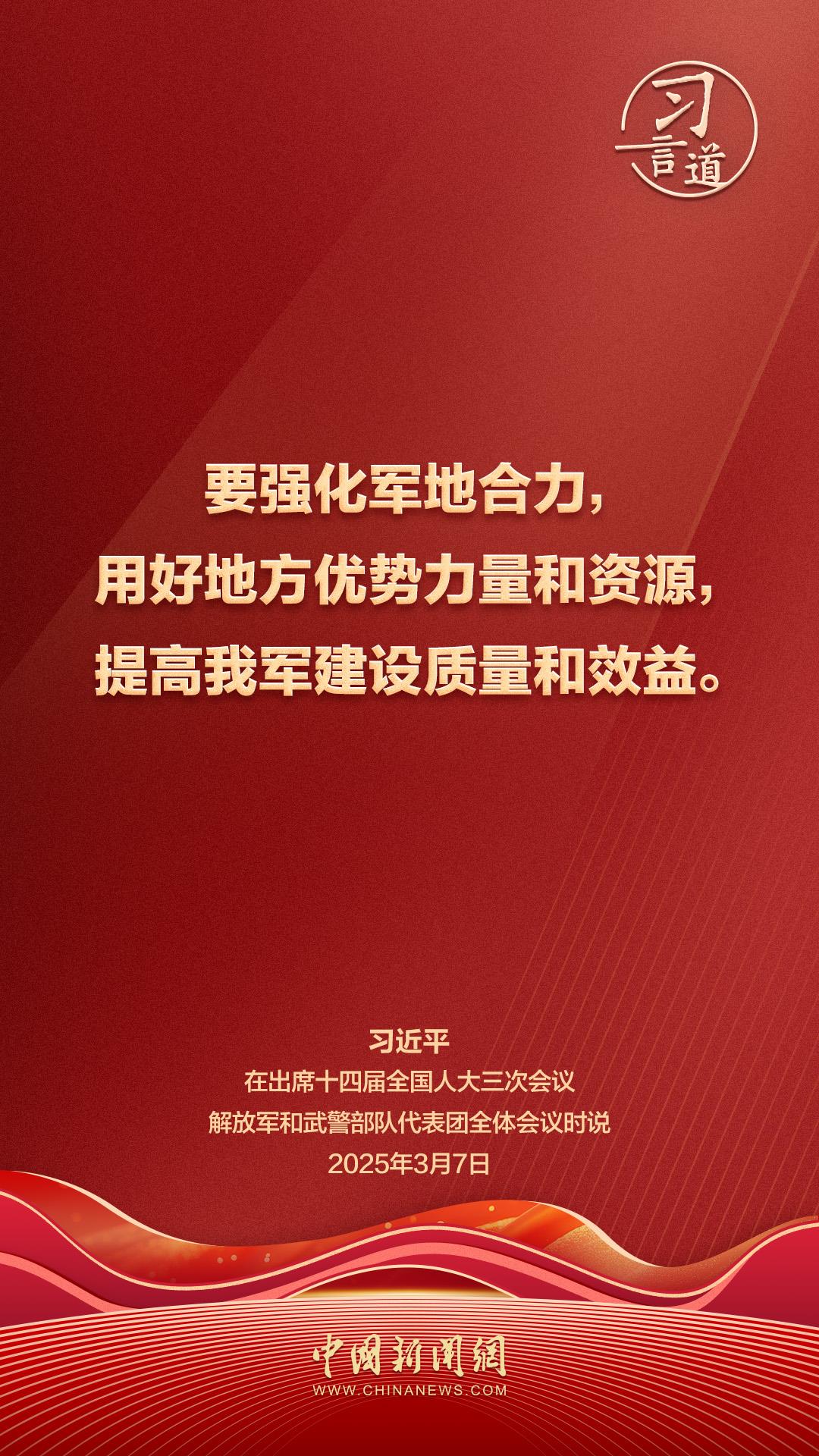 中共中央总书记、国家主席、中央军委主席习近平7日在出席十四届全国人大三次会议解放军和武警部队代表团全体会议时强调——