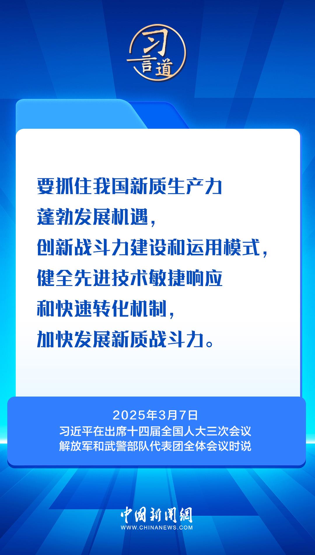 2013年到2025年的全国两会,中共中央总书记、国家主席、中央军委主席习近平连续13年到解放军代表团、解放军和武警部队代表团,与全军官兵代表们共商国是,谋划国防和军队现代化建设。这些话语掷地有声,为强军建设指引奋进方向——