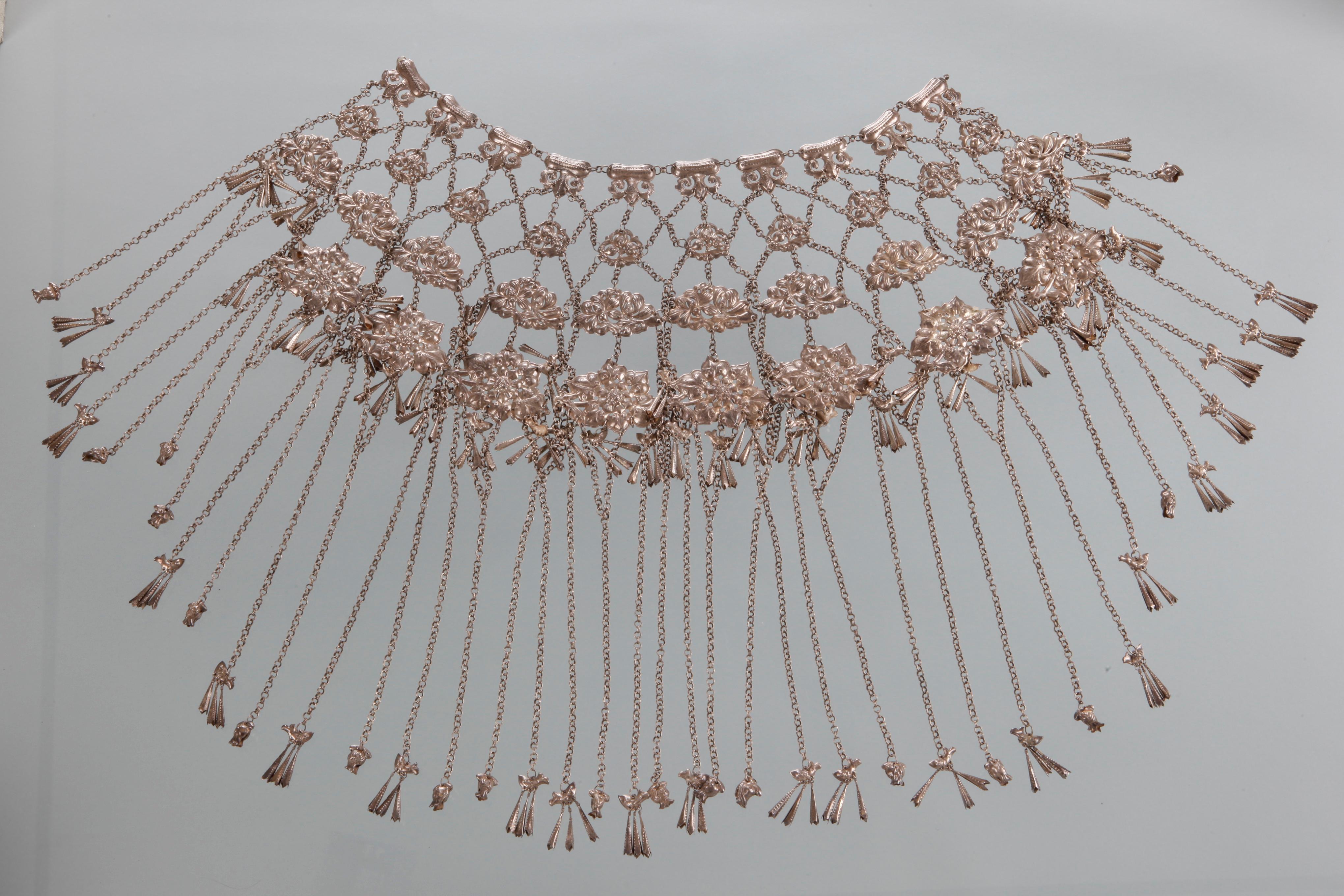 花草 、动物等吉祥图案的4排银牌相缀连