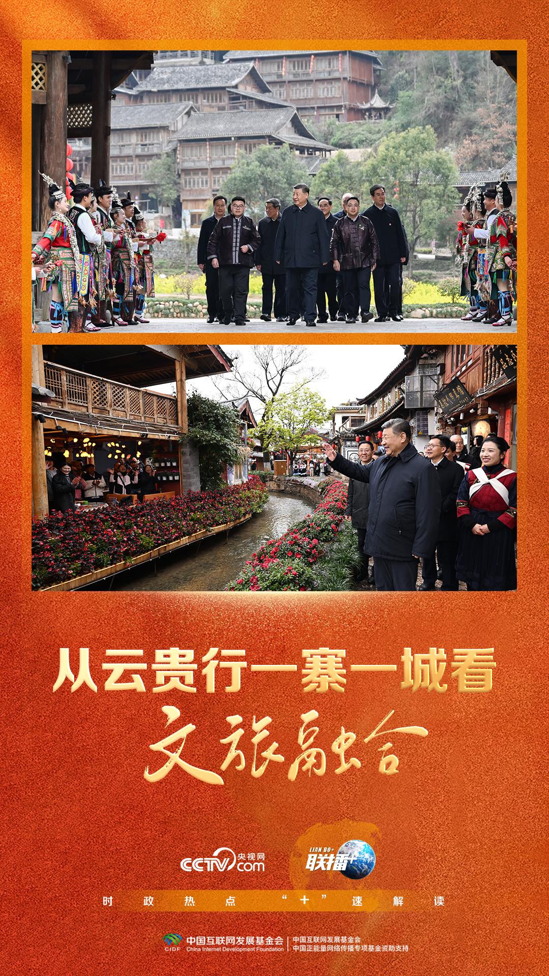 联播+2025年3月17日至20日,习近平总书记先后来到贵州、云南,开启两会后首次地方考察。此次跨省考察,总书记走进一寨一城,都提到了一个命题——文旅融合。