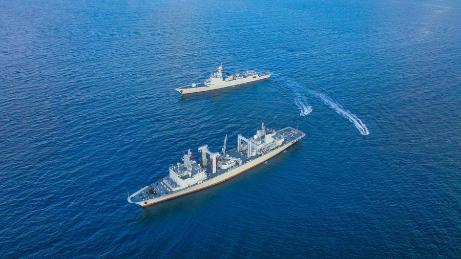 中国海军第46批护航编队组织反恐反海盗演练,舰艇掩护小艇出击(2025年1月2日摄)。中国海军第46批护航编队完成亚丁湾、索马里海域护航等任务后,24日返回广东湛江某军港。新华社发(张大禹摄)习近平主席坚定倡导真正的多边主义,引领中国在解决地区和全球热点问题上发挥建设性作用。