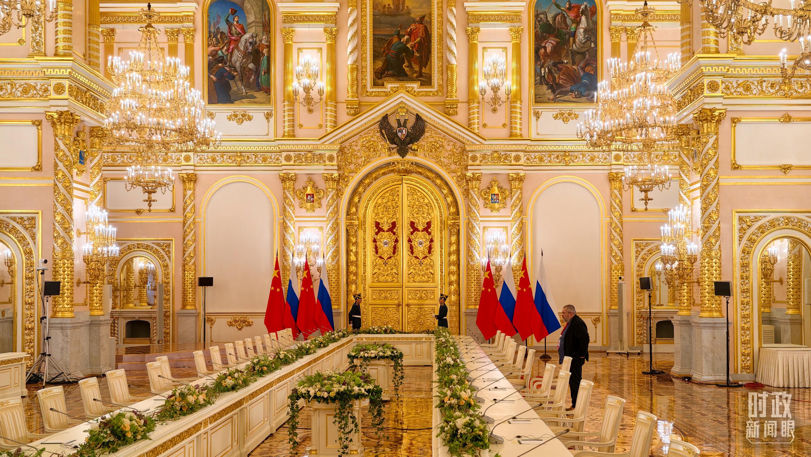 △习主席和普京总统举行大范围会谈的会场。(总台央视记者赵东辰拍摄)
