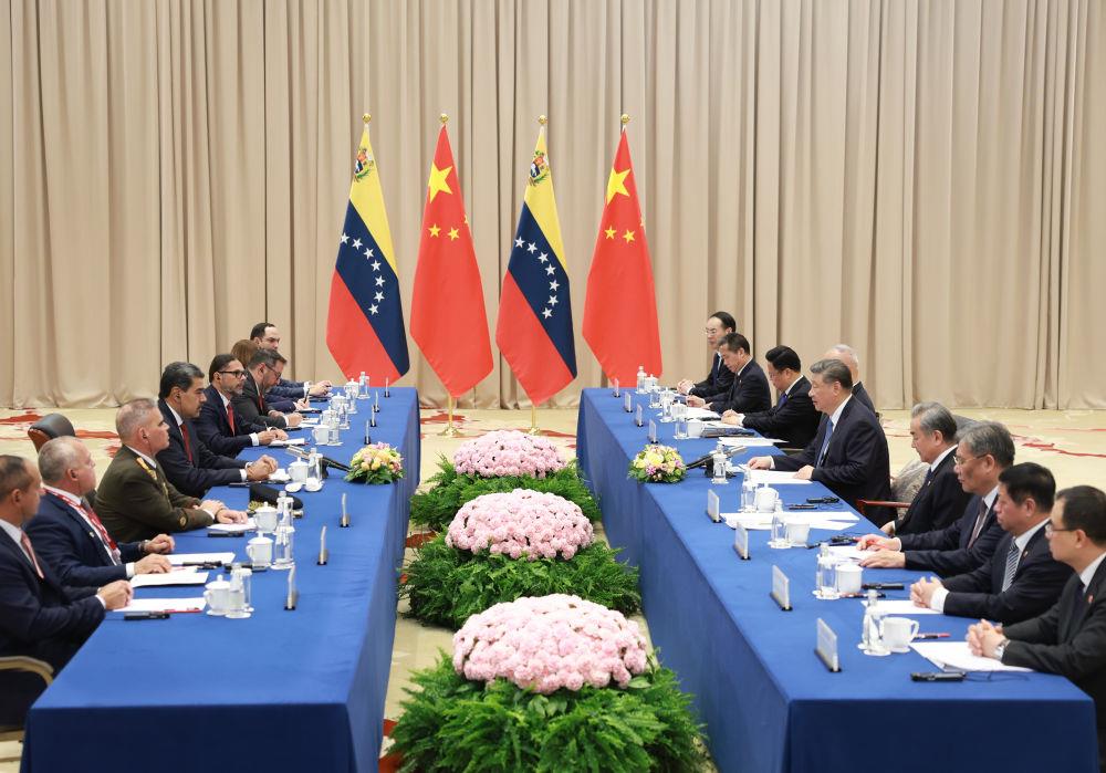 习近平指出,中国和委内瑞拉是相互信赖、共同发展的好伙伴,双方在国际风云变化中结下铁杆友谊。2023年我们共同宣布建立中委全天候战略伙伴关系以来,双方各领域各层级交往热络,双边贸易额持续增长,投资合作、人文交流取得新进展,中委友好更加深入人心。中方始终从战略高度和长远角度看待和发展同委内瑞拉关系,将一如既往坚定支持委方维护国家主权、民族尊严、社会稳定,愿同委方加强治国理政经验交流,持续深化各领域务实合作,推动中委关系不断迈上新台阶,更好造福两国人民。中方愿同委内瑞拉等拉美国家一道,坚定维护以联合国为核心的国际体系和以国际法为基础的国际秩序,推动中拉命运共同体建设行稳致远。