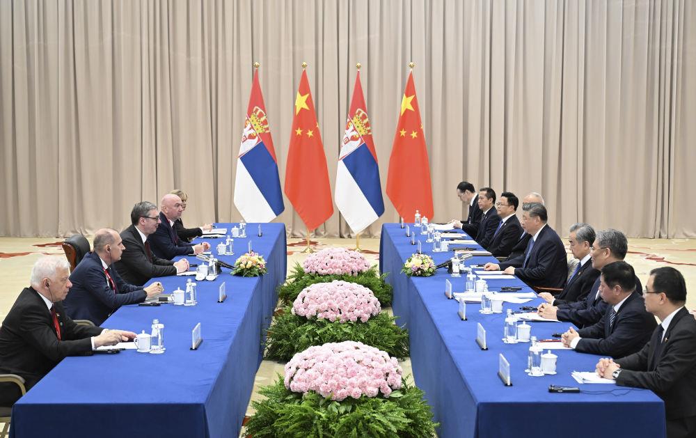 习近平主席会见塞尔维亚总统武契奇。