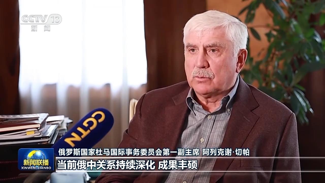 俄罗斯国家杜马国际事务委员会第一副主席 阿列克谢·切帕:当前俄中关系持续深化,成果丰硕。习主席和普京总统深化政治互信,进一步筑牢了两国人民之间的信任,俄中两国在双边合作、多边平台的协作等方面都取得了长足发展。