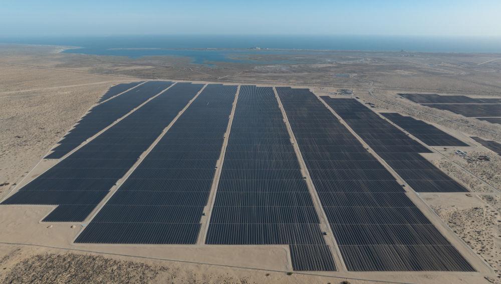 这是2025年4月2日在墨西哥佩尼亚斯科港附近拍摄的中国能源建设集团承建的佩尼亚斯科港光伏项目二期工程(无人机照片)。新华社记者 李梦馨 摄