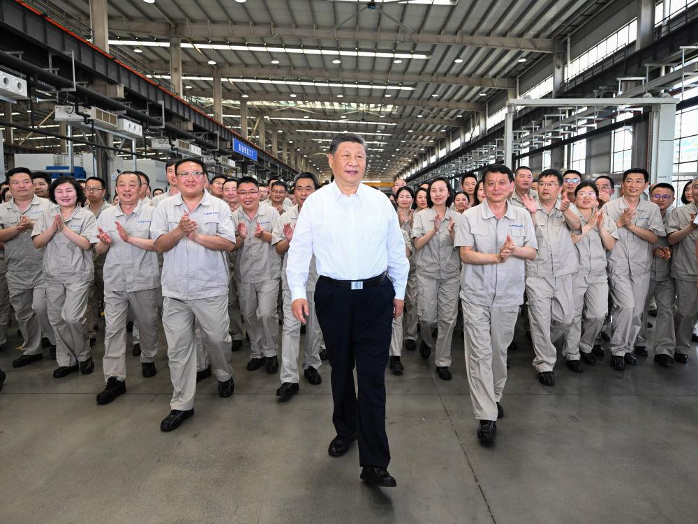 离开洛轴时,工人们簇拥着总书记,激动地鼓起掌来,机器轰鸣,步履铿锵。