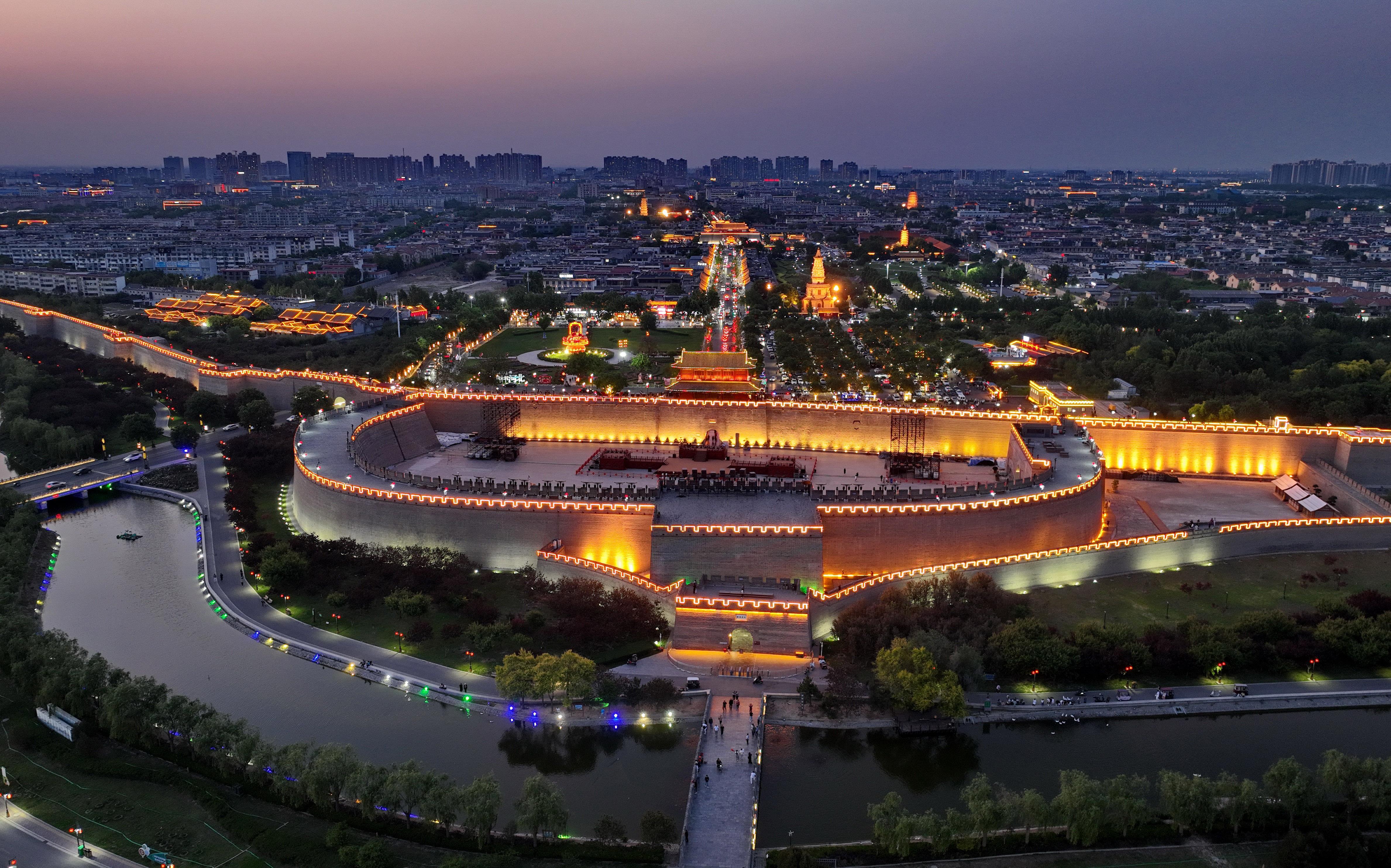 2025年5月15日,河北正定古城夜景(无人机照片)。 新华社记者 杨世尧摄