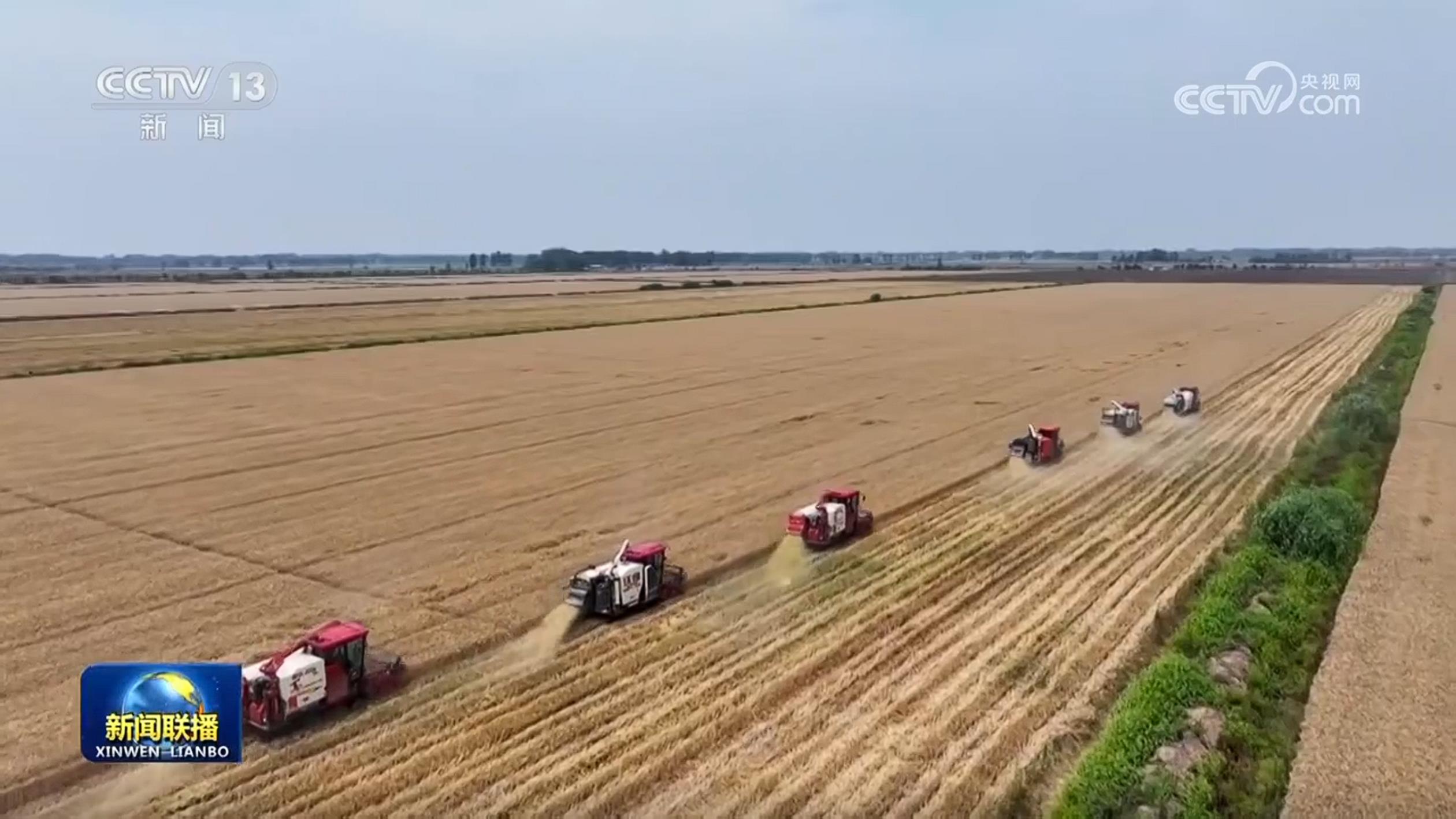 央视网消息(新闻联播):粮食安全是“国之大者”。习近平总书记强调,要严守耕地红线,高质量推进高标准农田建设,强化农业科技和装备支撑,确保粮食和重要农产品稳产保供。今年以来,各粮食主产区紧盯实现粮食产量1.4万亿斤左右的目标,抓实抓细大面积单产提升措施,全方位夯实大国粮仓根基,端稳端牢中国人自己的饭碗。