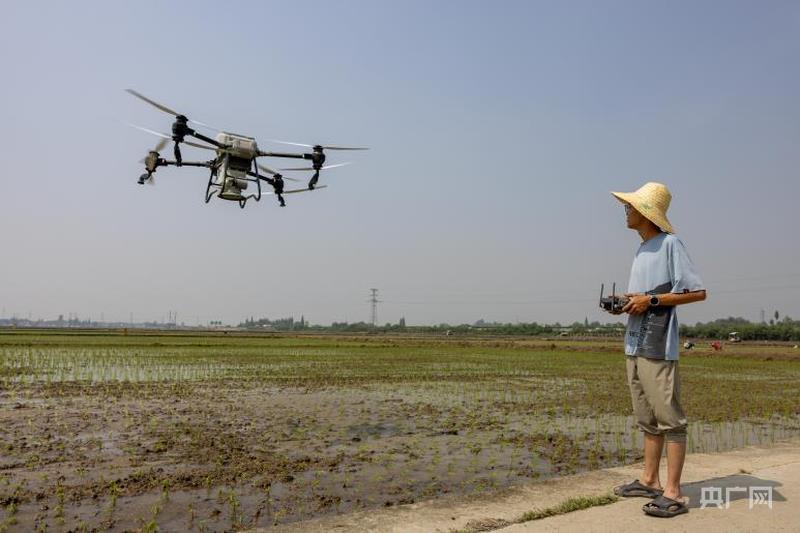 新农人王海聪正在操控植保无人机(央广网发 侯建明 摄)