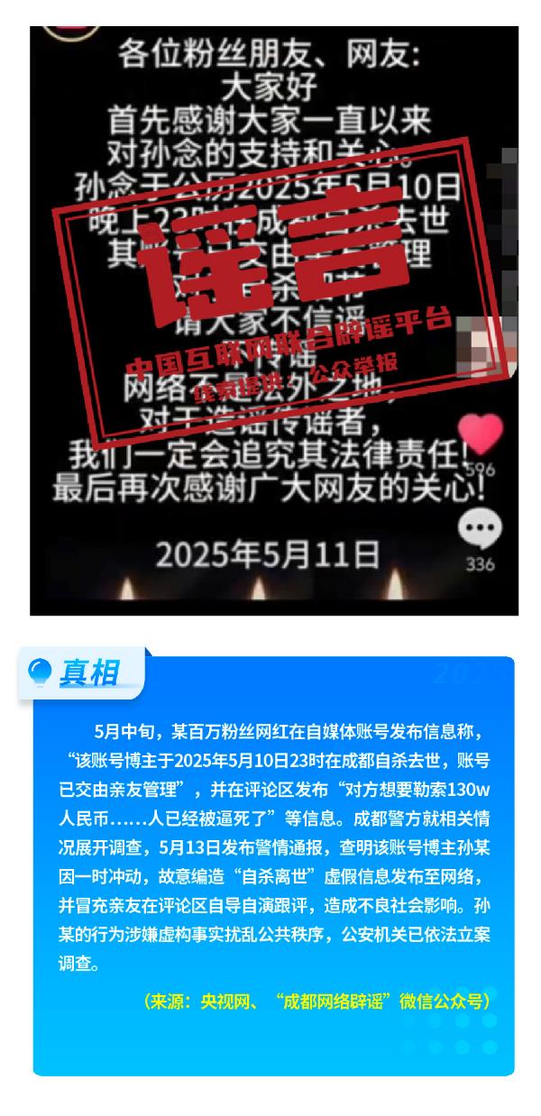 提示:此类谣言既破坏了正常的网络传播秩序,也对公共资源造成无谓消耗。公众需以官方发布为准,避免误传不实内容。