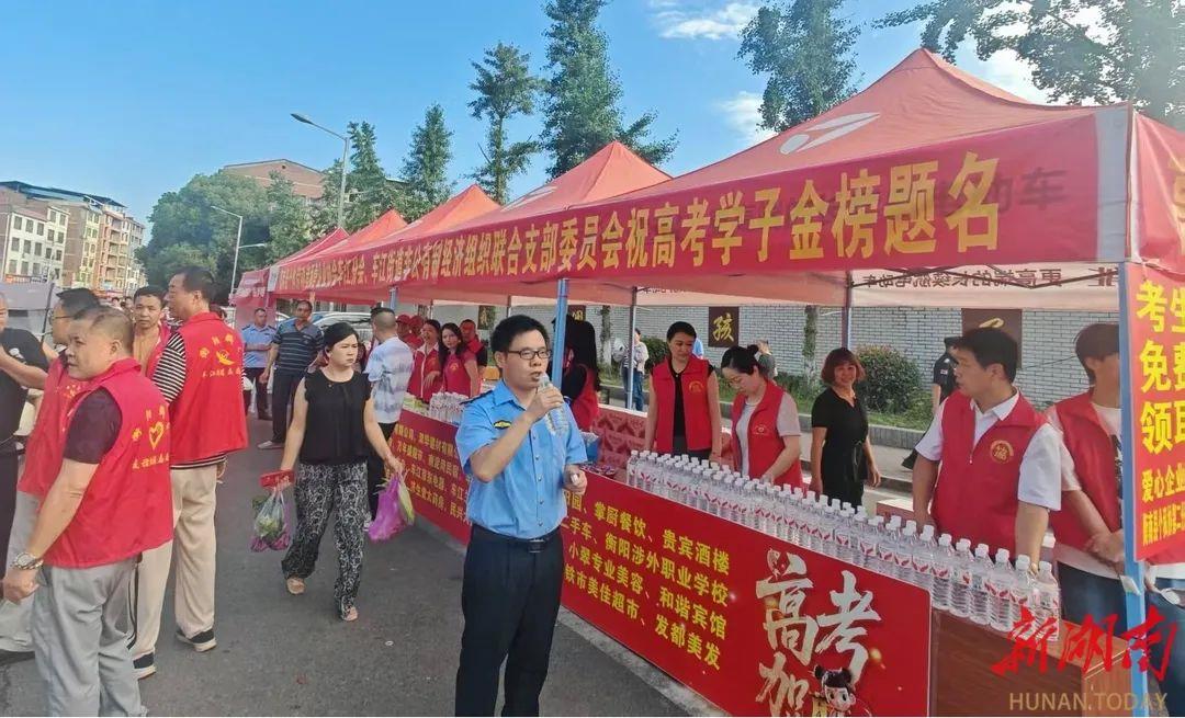 高考期间,祁东县委社会工作部联合共青团祁东县委在全县各考点开展“闪耀青春 逐光前行”爱心助考志愿服务活动,为考生“保驾护航”。