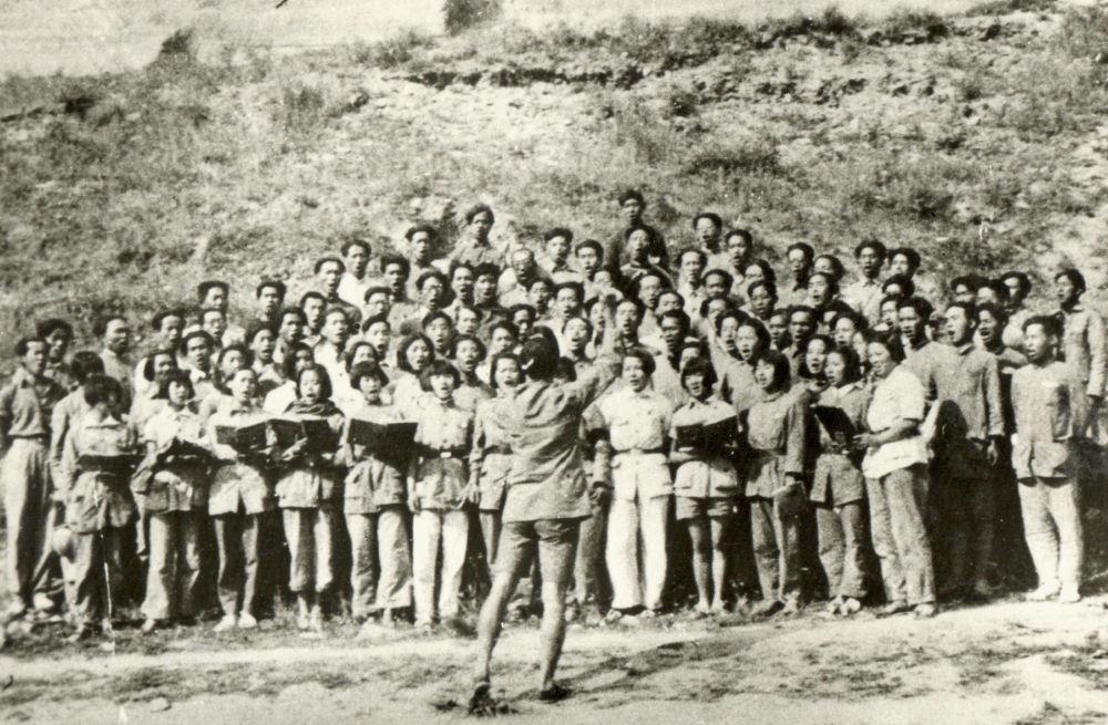 这是1939年鲁艺学员排练《黄河大合唱》的资料照片。新华社发(延安文艺纪念馆供图)