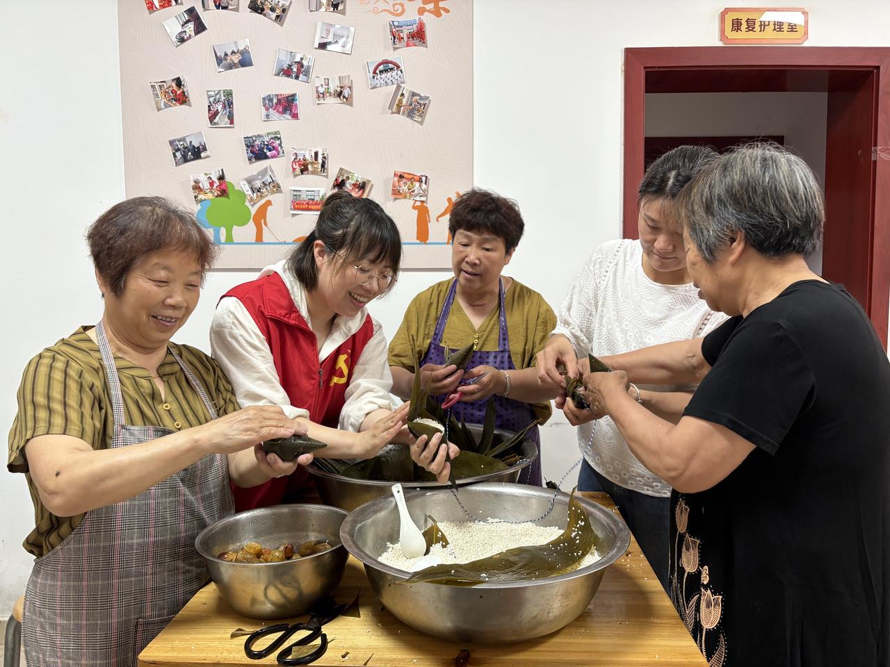 民主决策“五步法”将幸福花苑居民拧成一股绳,今年端午节的社区活动中,老人们与志愿者共包粽子。天台县福溪街道供图