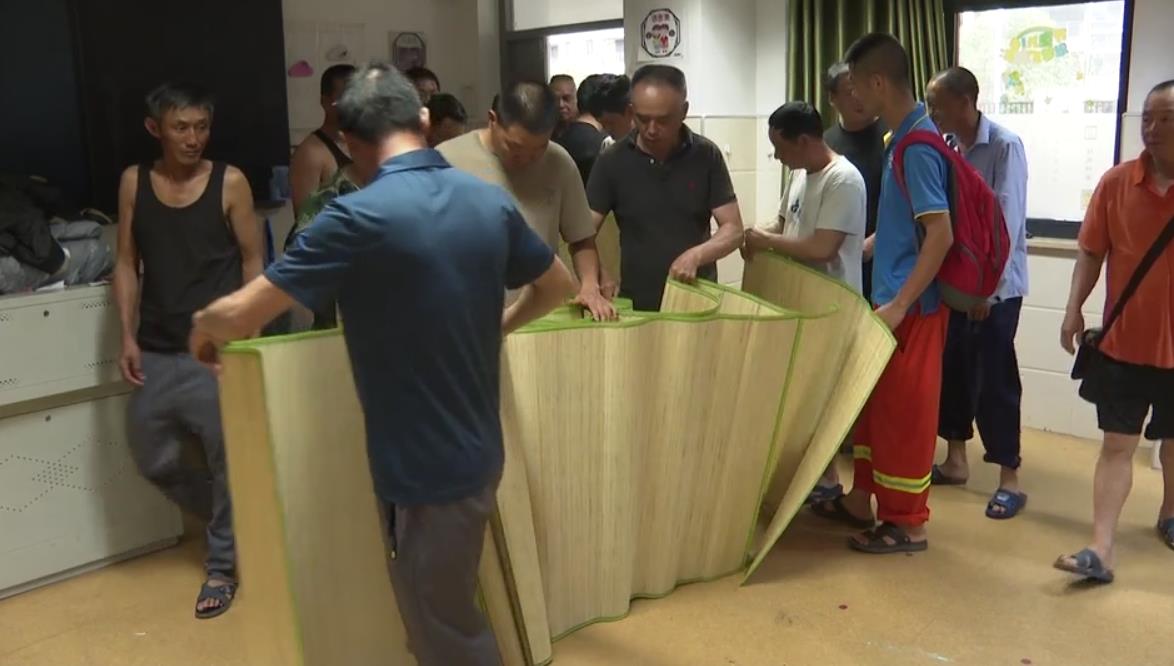 在温州洞头一处街道避灾安置点,安置有57名甬莞高速的建筑工人。除了基本生活物资外,街道为工人们提供插线板、电蚊香等物资,确保他们在台风期间能够安心居住。