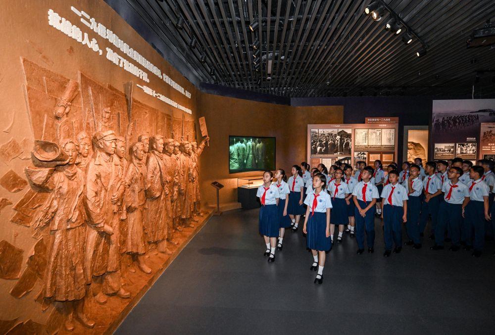 今年是中国人民抗日战争暨世界反法西斯战争胜利80周年。7月7日,正在山西阳泉市考察的习近平总书记来到百团大战纪念碑广场,向百团大战烈士敬献花篮,参观百团大战纪念馆,缅怀抗战烈士英雄事迹。在纪念馆大厅,他同青少年学生和纪念馆工作人员亲切交流。