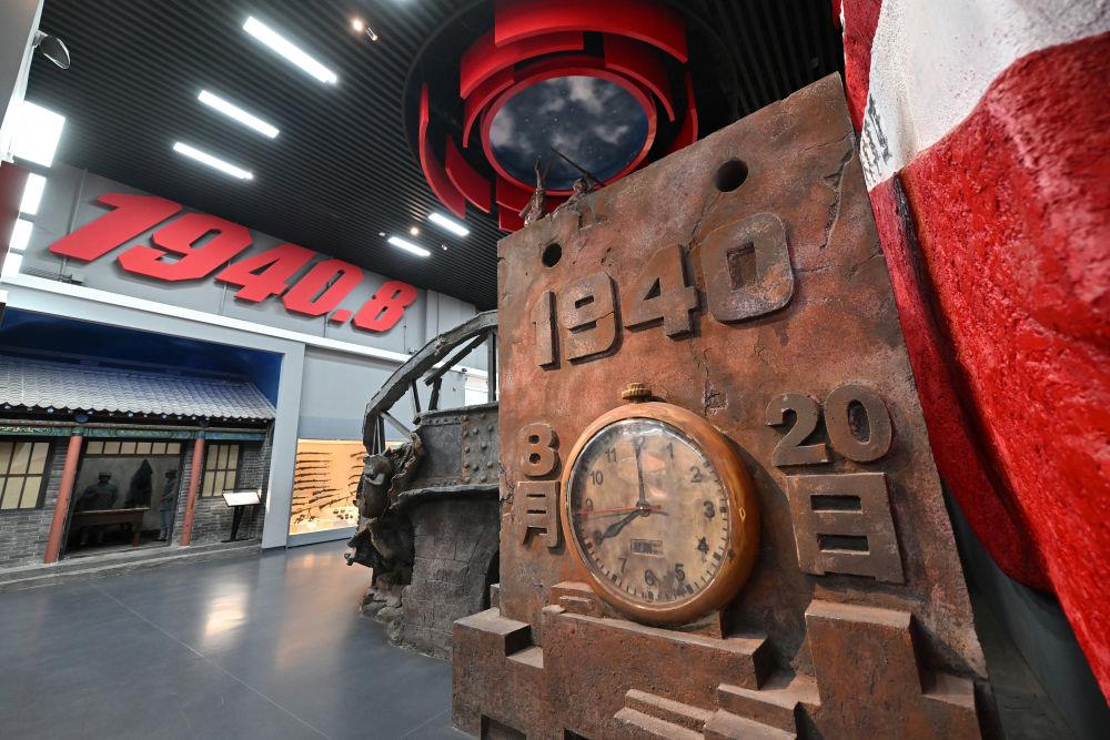 纪念馆不远处,巍峨的百团大战纪念碑形如刺刀,直插云霄。