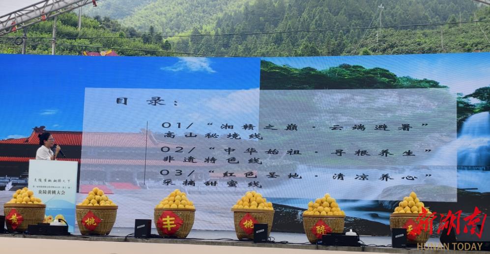 现场,炎陵县发布3条炎陵黄桃季旅游线路——“湘赣之巅·云端避暑”高山秘境线、“中华始祖·寻根养生”非遗特色线、“红色圣地·清凉养心”采摘甜蜜线,集吃、住、游等于一体,让游客体验农耕乐趣,享受大自然的清凉馈赠。活动期间,还将举办“山风音乐会”“黄桃趣味采摘运动会”“‘桃气夜市’仲夏嘉年华”“招募‘炎陵黄桃清凉体验官’”等活动。