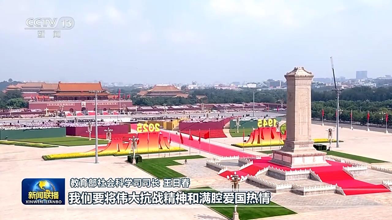 教育部社会科学司司长 王日春:习近平总书记的重要讲话和这次阅兵仪式,对于广大青少年来说,是一场生动的、沉浸式的爱国主义教育“思政大课”。我们要将伟大抗战精神和满腔爱国热情,转化为推动教育强国建设的强大动力,引导学生铭记历史、缅怀先烈、踔厉奋发、勇毅前行,争做担当民族复兴大任的时代新人。
