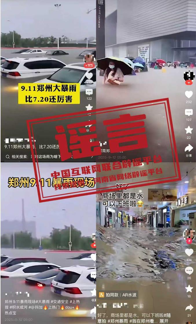 详情:近日,网络平台账号“团团的世界”“在乎在乎的”“雨中悠然听风声”“卫浴喇叭花”“清风”“龙小小”等发布涉郑州汛情雨情信息,经相关部门核实为拼凑剪辑、旧闻翻炒、移花接木、AI技术生成等不实信息,误导网民关注和评论,扰乱网络传播秩序,造成不良社会影响。互联网不是法外之地,在网络上发布信息、发表言论必须遵守法律法规,对自身言行负责,不造谣、不信谣、不传谣。对于编造、传播、散布涉汛情雨情不实信息等行为,网信、公安等部门将依法依规严厉打击,共同维护清朗网络空间。(来源:“清朗河南”微信公众号)